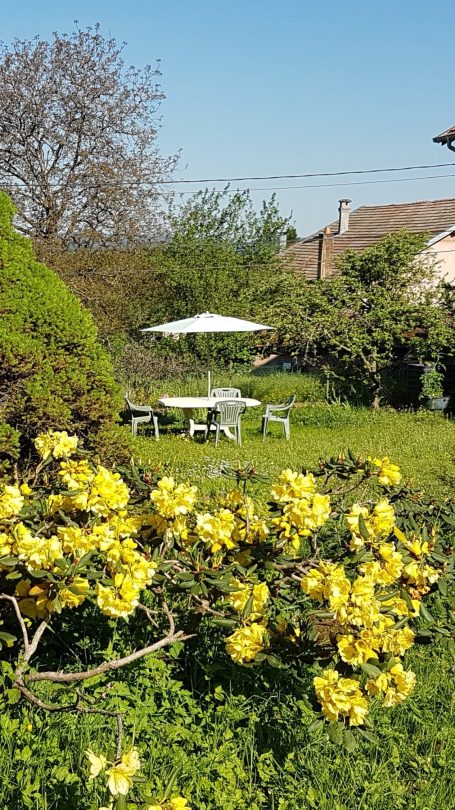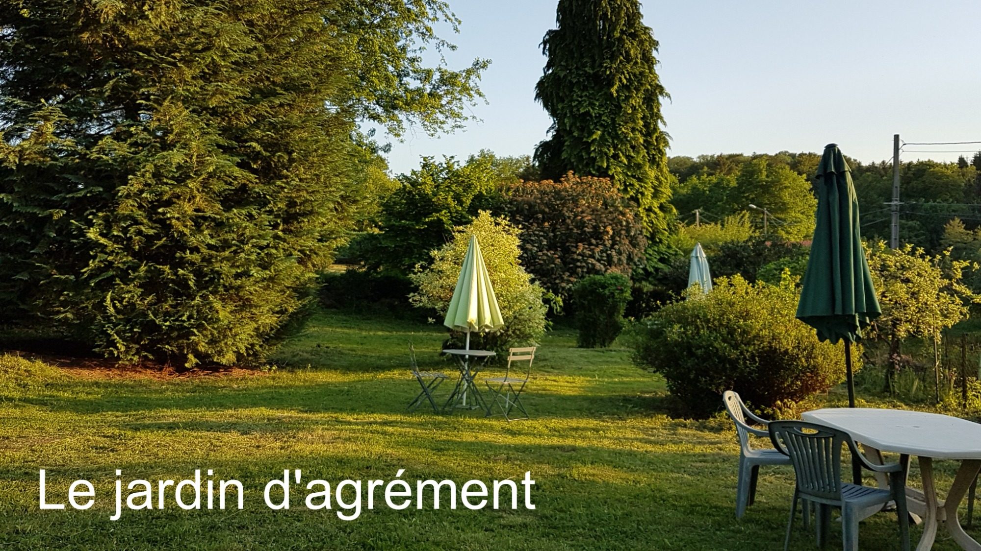 A votre disposition le jardin d'agrément avec parasols et chaises longues pour vous reposer, un coin repas, un  BBQ à charbin de bois, à partager avec les autres hôtes et votre hôtesse.