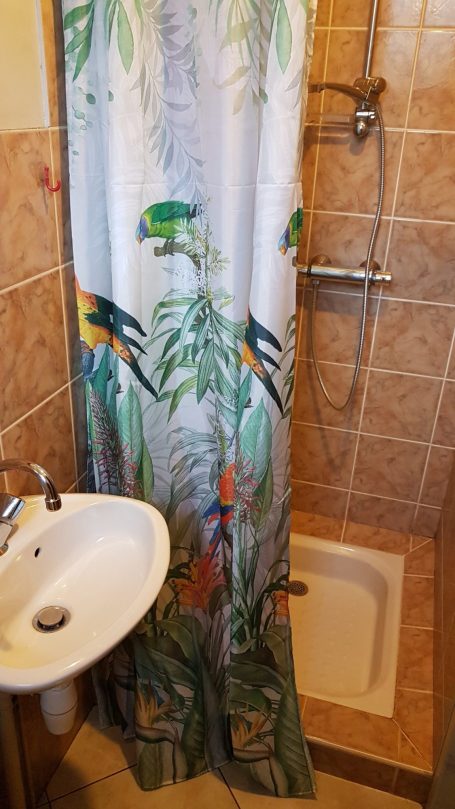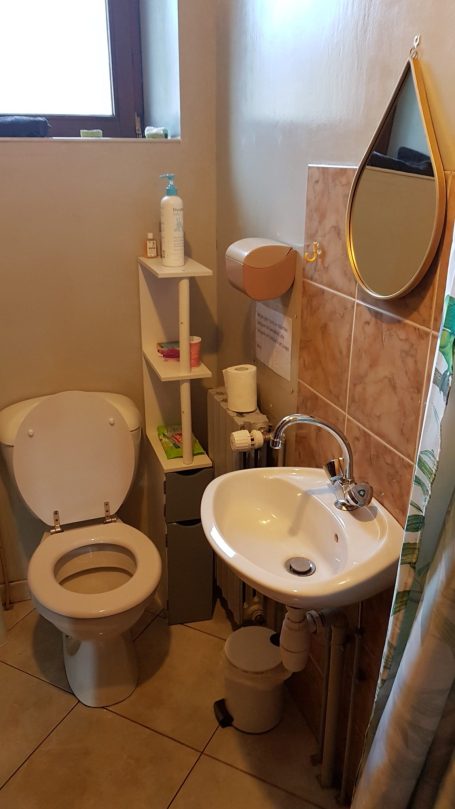Une douche-toilette et un bureau (avec imprimante 0.5 € la feuille) à partager.