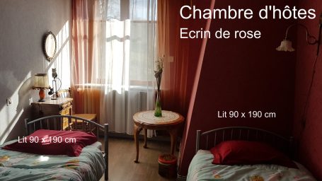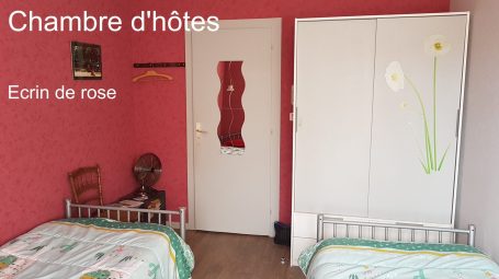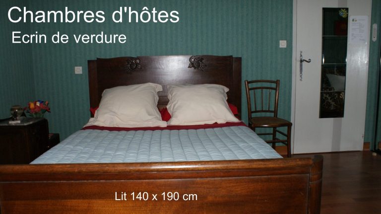 La chambre verte avec un lit double de 140 x 190, un bureau et une télé,  avec une salle de bain à partager avec votre hôtesse.