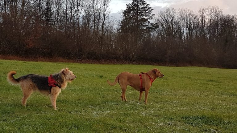 Les gardiens de la maison, Happy et Zazou qui n'aiment pas les chats... mais acceptent bien les chien pas trop dominants